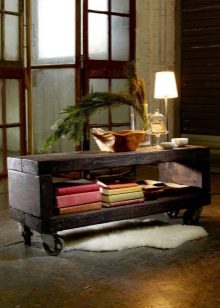 طاولات القهوة المصنوعة من جذوع الأشجار السميكة منمقة مثل جذوع الأشجار الضخمة ستبدو رائعة بين الكراسي بالقرب من المدفأة. قد يكون الخيار غير المعتاد هو طاولة صغيرة على شكل حصاة طبيعية (تمت معالجتها قليلاً للحصول على سطح مستوٍ) أو حجر البحر ، مصقول بواسطة الأمواج الثابتة.