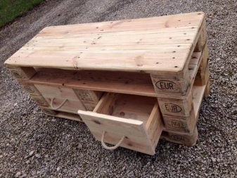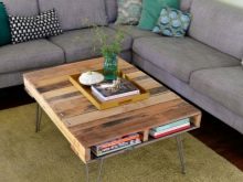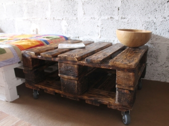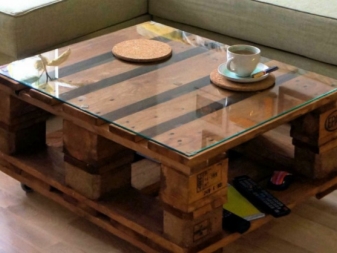 - من السهل صنع طاولة قهوة أنيقة من المنصات. يكفي فقط معالجة السطح بالبقع ، وربط طبقتين أو ثلاث منصات بمسامير وتوفير زجاج من الأعلى.