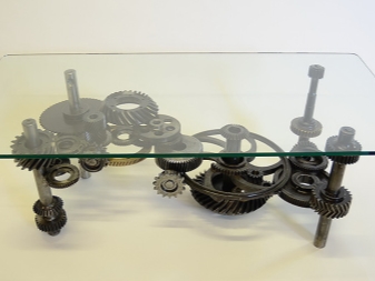 - طاولة مذهلة غير عادية بسطح زجاجي وتروس معدنية سوداء في الأسفل ستزين أي ديكور داخلي بهذا النمط.