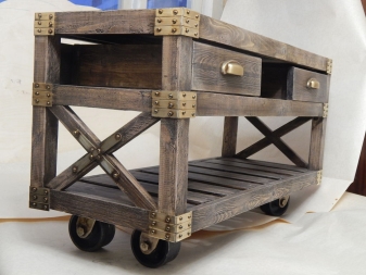 - يمكنك صنع طاولة من أربعة صناديق خشبية, انقلبت من جانبها وانسحبوا معا. سيبدو هذا أيضًا أنيقًا وغير عادي ، والأهم من ذلك ، أنه سمة مميزة جدًا لأسلوب الدور العلوي..