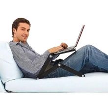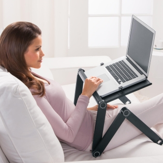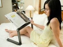 هذا هو السبب في أنه من الضروري أن يكون لديك طاولة كمبيوتر محمول قابلة للتحويل في المنزل. سيوفر فرصة للعمل خلفه في أي وقت وفي أي وضع: الجلوس والاستلقاء والاستلقاء. يمكنك حتى الجلوس بشكل مريح على الأرض.