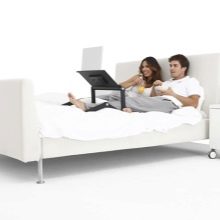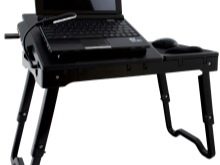 بعض النماذج لديها حتى حامل الكأس. إنهم لا يلعبون دور إمدادات المحولات لأجهزة الكمبيوتر المحمول فحسب ، بل يلعبون أيضًا دور طاولة بجانب السرير..