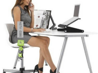 ميزة أخرى هي الوظيفة. لا داعي للقلق بشأن حقيقة أن الكمبيوتر المحمول الخاص بك أثناء التشغيل سوف يسقط من هذا الهيكل. إنه متعدد الاستخدامات ، وسطح العمل مناسب لجميع طرازات أجهزة الكمبيوتر المحمولة وحتى الأجهزة اللوحية. هناك أيضًا منتجات بها مشابك. لا يمكنك وضع كمبيوتر محمول عليها فحسب ، بل يمكنك أيضًا وضع كتاب.