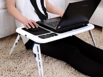 طاولة الكمبيوتر القابلة للطي مصنوعة من بلاستيك خفيف الوزن ولكنه متين. ولكن هناك أيضًا نماذج أكثر موثوقية بأرجل معدنية أو فولاذية. يتم تقديم معظم المزايا من خلال الموديلات ذات الأرجل التي يمكن تدويرها 360 درجة. يتم تقديم هذه الحوامل على شكل ثلاث ركب بطول حوالي 25 سم ويمكن تعديلها ووضع المنضدة بالشكل الذي يناسبك..
