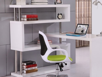 يمكن استكمال ملحقات جداول الزاوية ، إذا رغبت في ذلك ، بأجهزة مصممة لتبسيط عملية العمل. يمكن أن تكون هذه مصابيح فلورية ومفاتيح ومآخذ وما شابه ذلك. إذا كان من الضروري زيادة مساحة العمل المفيدة ، فمن الممكن استخدام الرفوف والخزائن.