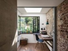بالإضافة إلى ذلك ، طاولات الزاوية ليست واضحة في الغرفة. إنها لا تبدو ضخمة جدًا ، ولكنها “تختبئ” بدقة في الزاوية. سيبدو هذا الجدول رائعًا في مساحة الزاوية بجوار النافذة..