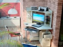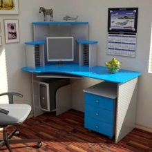 جداول الكمبيوتر الزاوية – نموذج مناسب لغرفة صغيرة.