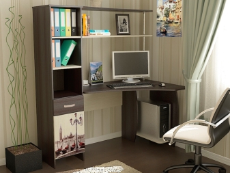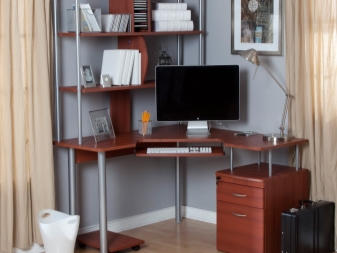 يمكن استكمال ملحقات جداول الزاوية ، إذا رغبت في ذلك ، بأجهزة مصممة لتبسيط عملية العمل. يمكن أن تكون هذه مصابيح فلورية ومفاتيح ومآخذ وما شابه ذلك. إذا كان من الضروري زيادة مساحة العمل المفيدة ، فمن الممكن استخدام الرفوف والخزائن.