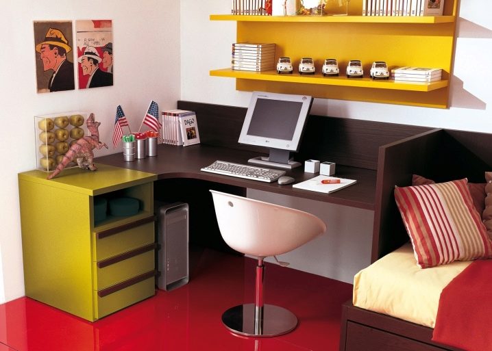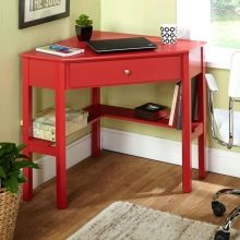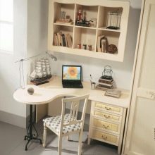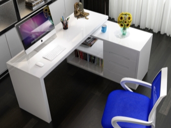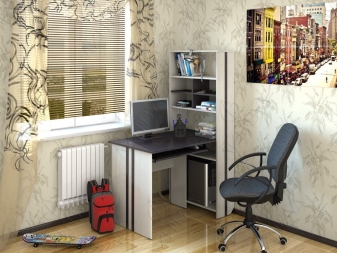 - الزاوي. خيار رائع لغرفة صغيرة. يمكنك وضعها في أي غرفة في المنزل. مثل هذا الجدول لن يشغل مساحة كبيرة. سيسمح لك النموذج متعدد الوظائف بوضع جهاز كمبيوتر وملحقاته وأدوات التدريس واللوازم المكتبية وغير ذلك الكثير..