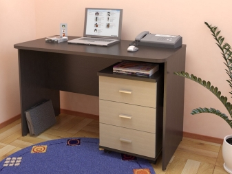 - مدمج. هذا الخيار هو الأكثر شيوعًا. يصبح حجر الرصيف جزءًا لا يتجزأ من الهيكل ، مما يجعل الأثاث أكثر متانة. بالإضافة إلى ذلك ، تتطلب الطاولات ذات الأجزاء المدمجة مواد أقل قليلاً من طاولة وخزانة منفصلة. أيضًا ، تبدو هذه التصميمات أكثر إرضاءً من الناحية الجمالية وتناغمًا ، لأنها لا تحتوي على مفاصل أو طبقات. ومع ذلك ، فإن جداول الكمبيوتر هذه لها أيضًا بعض العيوب. على سبيل المثال ، لن تتمكن بعد الآن من استخدام سطح الطاولة بشكل منفصل عن الخزانة ، مما يعني أنك لن تتمكن من إعادة ترتيب العناصر الهيكلية وفقًا لتقديرك..