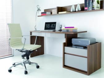 - بفضل هذا التصميم ، لن يصبح عملك أكثر ملاءمة فحسب ، بل سيكون أكثر كفاءة أيضًا ، لأنه لن تضطر إلى تشتيت انتباهك بالبحث عن هذا العنصر أو ذاك. سيكون كل شيء في متناول اليد – في منضدة مكتب الكمبيوتر. بالإضافة إلى ذلك ، تبدو معظم الطرز الحديثة أنيقة وجميلة للغاية. هذا الأثاث مضمون ليتناسب مع المناطق الداخلية لأي منزل تقريبًا..