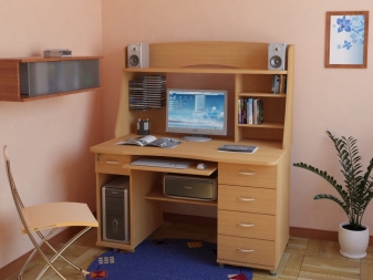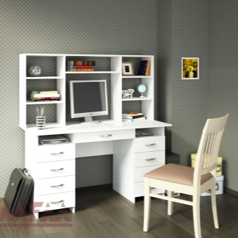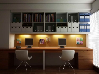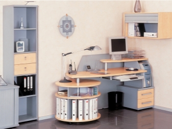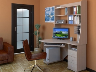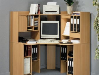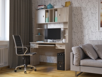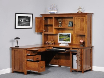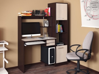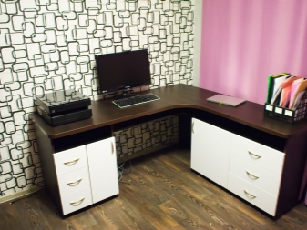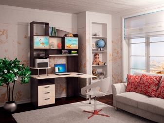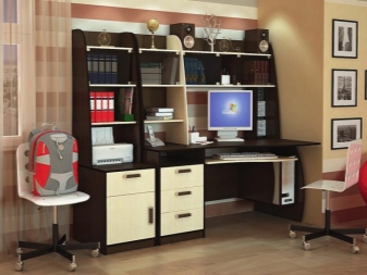 - الراحة وبيئة العمل. سيسمح لك هذا التكوين للأثاث بتنظيم المساحة بأكبر قدر ممكن من الكفاءة. ستكون جميع الأوراق والمستندات في مكانها ، ولن تضطر إلى البحث عن قلم في الغرفة المجاورة. أيضًا ، في كثير من الأحيان ، تُستكمل هذه التصميمات بفتحات ومنافذ خاصة للكابلات والأسلاك. يعد ذلك ضروريًا حتى لا يتسبب توصيل الجهاز في أي صعوبات ويكون مناسبًا قدر الإمكان..
