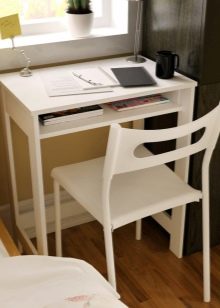 لقد أثبت الخبراء أن ظلال الضوء لها تأثير إيجابي على العمليات العقلية المختلفة. إنها تسمح لك بحفظ كميات كبيرة من المعلومات بشكل أفضل. تعتبر الطاولة البيضاء مثالية للتلاميذ والطلاب. أيضًا ، لا تنس أن الأبيض هو خلفية ممتازة لتجسيد حلول الألوان المختلفة. يبدو الأثاث الأبيض جميلًا في مجموعة مع ورق حائط أو ستائر رائعة مزينة بطبعات ملونة.