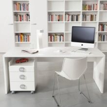 يعد مكتب الكمبيوتر الأبيض خيارًا متعدد الاستخدامات لترتيب منطقة عمل أو مساحة مكتبية ، وبالتالي فإن العديد من الشركات المصنعة لأثاث الخزائن (“فيترا” ، “كومباس” ، “أكما” وغيرها) تقدم نماذج مختلفة. يستخدمون مواد وتصميمات وأشكال وأحجام مختلفة..