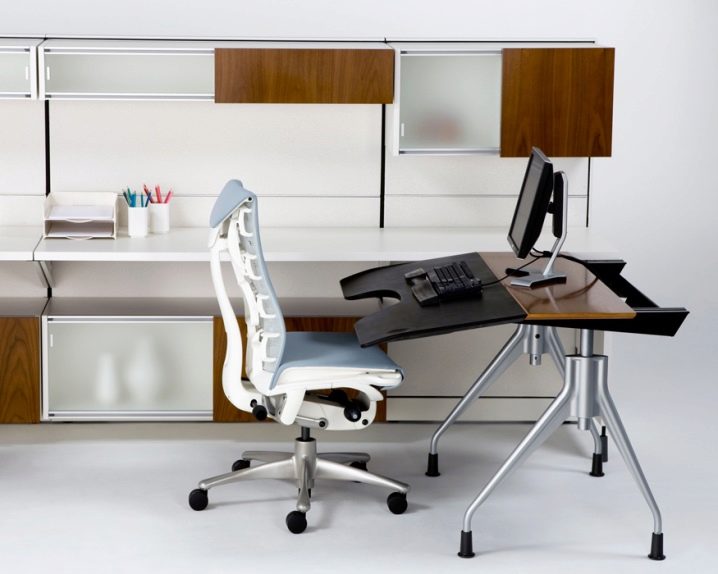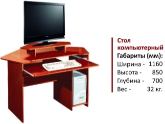 يجب ألا يقل ارتفاع الطاولة عن 75 سم. بحيث تكون النقطة المركزية للشاشة أقل بقليل من مستوى العين. بعض الموديلات مجهزة بحامل مخصص قابل للتعديل. يجب أن يضع الرف القابل للسحب الخاص بلوحة المفاتيح وماوس الكمبيوتر هذه الأشياء بشكل مريح على نفسه. لا يمكنك مطاردة الموضة والبساطة ، وإلا سيكون من غير الملائم استخدامها في عملك..