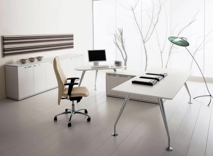 - نموذج عمودي قطريًا. ميزته هي سطح طاولة جانبي طويل إلى حد ما يمكن استخدامه كمكتب. بالنسبة لهذه النماذج ، فإن البنية الفوقية للحامل الواحد ليست كافية وغالبًا ما تمثل بنية معقدة إلى حد ما مع التعديل. يتم استخدام المساحة الرأسية بنشاط ، وعلى الرغم من ضخامتها ، فإن هذه النماذج مطلوبة.