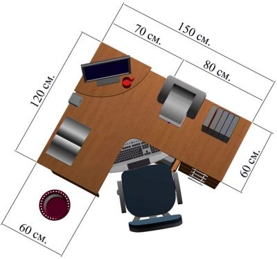 تعود مدة العمل على الطاولة إلى وضع الجلوس الصحيح للشخص وسهولة الوصول إلى جميع الأشياء. ويشكل جدول الزاوية ، نظرًا لشكله ، في حد ذاته بالفعل “المثلث” العامل نفسه تمامًا.