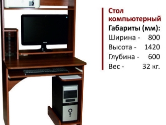 - موديل من مصنع سوكول, تنتمي إلى فئة الخيارات المبسطة والمضغوطة – “راسل”. الشكل شبه منحرف ، لا توجد هياكل فوقية ، الجدار الجانبي طويل جدًا – 90 سم.على الرغم من أن الطاولة صغيرة الحجم ، إلا أن الشكل يوفر سعة جيدة ، بفضل المقصورات المنفصلة لوحدة النظام ومكان منفصل للطابعة. يوفر رفًا متحركًا للوحة المفاتيح والماوس. سعر هذا الجدول 3200 روبل.
