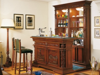 بفضل الذوق الرفيع ، يمكن أن يتناسب طاولة البار بشكل عضوي مع التصميم الداخلي الكلاسيكي ، أو في غرفة مزينة على الطراز الباروكي. اختر طاولات وكراسي خشبية ضخمة بأرجل ملتوية ، وسيبدو كل شيء مناسبًا تمامًا..