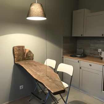 تبدو أسطح الطاولات المستديرة مثيرة للاهتمام أيضًا. تشبه هذه الطاولات تلك الموجودة في الكافيتريات أو البارات. إذا كنت تعيش بمفردك مع توأم روحك ، ولا تحتاج إلى مساحة كبيرة ، فإن هذا الأثاث سوف يناسبك..