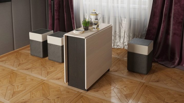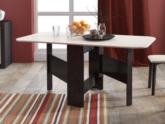 ربما تكون المحولات هي أكثر فئات الجداول إثارة للاهتمام. عند طيها ، تكون مضغوطة جدًا وتشبه طاولة سرير صغيرة. إذا وضعته على الحائط ، فلن يستغرق الأمر أكثر من نصف متر. لا غنى عن طاولة بهذا الشكل في مساحة محدودة ، عندما لا يكون من الممكن استيعاب طاولة طعام كبيرة لعشرات الأشخاص. أغطية أسطح العمل المفصلية متصلة بنظام مفصلات. عادة ما تكون المحولات مستطيلة الشكل ، ولكن هناك أيضًا نماذج مستديرة..