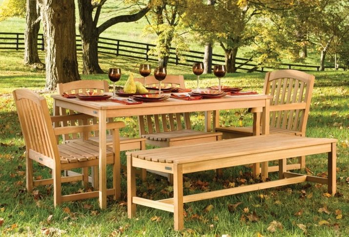 المواد الأكثر شيوعًا للطاولات وأثاث الحدائق الأخرى هي الخشب. يمكن تفسير ذلك بسهولة ، لأن للخشب عددًا من المزايا المهمة مقارنة بالمواد الأخرى ، على سبيل المثال ، المعدن أو الخرسانة.. تتمتع الشجرة بمزايا مثل: