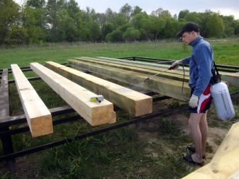قبل التجميع ، يجب معالجة كل جزء خشبي بمضاد للبيرين ، والذي سيكون بمثابة حماية ضد التعفن ، ويزيد من مقاومة الرطوبة ومقاومة الحريق.