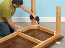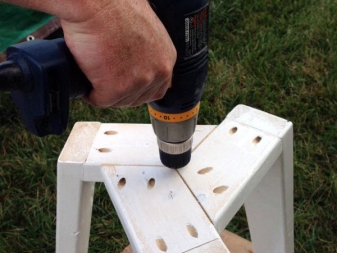 يتم حفر الثقوب في كل عنصر من عناصر المنتج ، ثم يتم ربط الأجزاء معًا ، مما يجعل المنتج قويًا حقًا. يمكنك تعزيز التأثير باستخدام التثبيت بالغراء الجيد. يتم تثبيت مسامير اللولب من الداخل بزاوية حادة بالنسبة للوحة. إذا كان المنتج النهائي يتذبذب بشكل ملحوظ ، فاستخدم أحزمة خاصة مع مثبتات. سيساعد هذا في جعل الهيكل أكثر موثوقية واستقرارًا..
