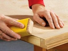 - صنفر الخشب بورق الصنفرة. أولا الثابت ، ثم لينة.