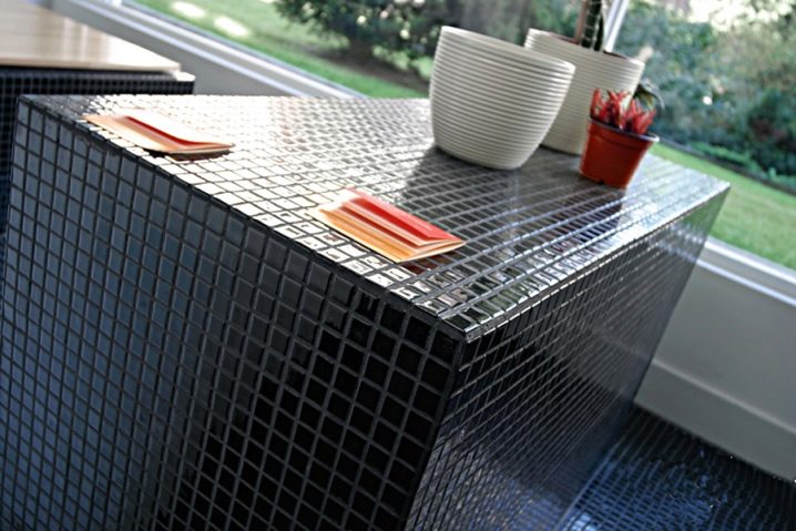 يمكن صقل الجدول الجديد بسهولة باستخدام بلاط الفسيفساء. حتى الآن ، يتم تقديم مجموعة واسعة في متاجر الأجهزة. يُنصح باستخدام مجموعة واحدة من البلاط بحيث لا توجد تناقضات في الارتفاع ولا يتم إنشاء ارتياح غير ضروري ، مما قد يؤدي إلى إتلاف النموذج وجعل الطاولة غير ملائمة للاستخدام. بالإضافة إلى الفسيفساء ، تحتاج إلى شراء الغراء والجص. باختصار ، يمكن وصف عملية إنشاء كونترتوب الفسيفساء على النحو التالي: