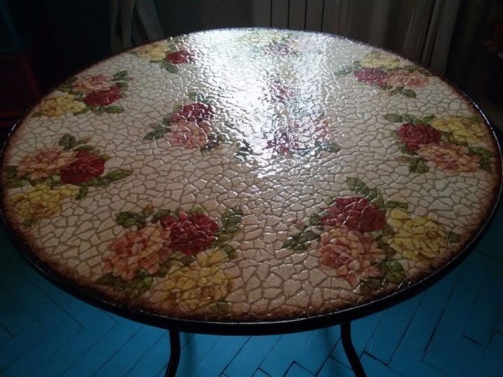 يفضل الكثير من الناس تصميم سطح طاولة تحت الزجاج. هذا الخيار مناسب إذا كان الجدول موجودًا بالداخل. من غير المرجح أن تمر الطاولة المرسومة يدويًا دون أن يلاحظها أحد من قبل الضيوف. سيضيف مثل هذا المنتج نكهة خاصة إلى أي غرفة..