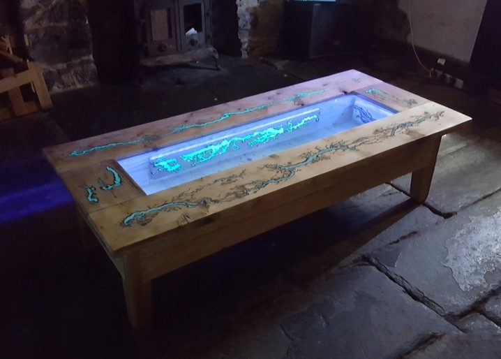 تعتبر الطاولة المضيئة حلاً تصميميًا ممتازًا ، كما أنها سهلة التنفيذ. تم تجهيز المنتج النهائي بإضاءة خاصة – مصابيح صغيرة أو شريط مع مصابيح LED مدمجة ، مما يوفر مجموعة متنوعة من خيارات الإضاءة: من البسيط إلى الملون.