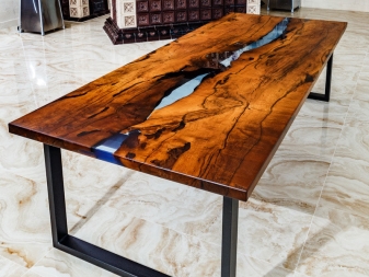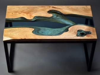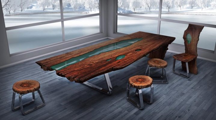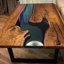 تعتبر الطاولة ، التي يملأ الجزء العلوي منها بالزجاج السائل ، وراتنج الإيبوكسي ، ومعالجتها وتزيينها بالمعدن أو الفوسفور أو بطريقة أصلية أخرى ، طريقة جديدة لإنتاج العناصر الداخلية الحصرية. قبل اثني عشر عامًا ونصف ، لم يكن بإمكان أحد حتى التفكير في مثل هذه الأساليب لمعالجة الأخشاب ، والأهم من ذلك ، أن يفترض أنه من النظرة الأولى ، يمكن للمواد الخام المعيبة أن تنتج أثاثًا رائعًا يزين أي غرفة.