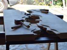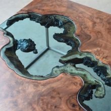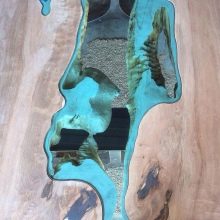 للحفاظ على جميع الميزات الطبيعية للمواد الطبيعية دون تغيير ، تتم معالجة كل جذع أو لوح أو قطع منشار يدويًا بعناية باستخدام آلة يدوية لأعمال النجارة – آلة فريزر. ثم يتم إزالة اللب بعناية ، ويتم دمج الزجاج الأزرق أو الشفاف في مكانه ، مما يكرر محيط جميع المخالفات في جذع الشجرة. والنتيجة النهائية هي بحيرة حقيقية في أعماق البحار..