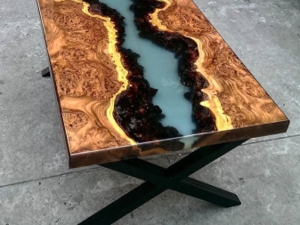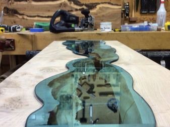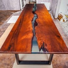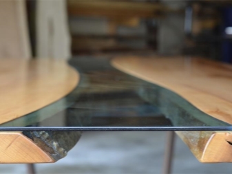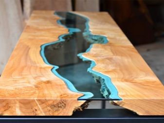 تلقى هذا العنصر اسمًا غير معتاد بسبب إدخال مصنوع من الزجاج أو حشوة راتنجات الايبوكسي في وسط سطح الطاولة. بصريًا ، تشبه الطاولة مضيقًا جبليًا يتدفق نهر في جوفه. لقد ظهر تأثير جميل بجنون يفوز على الفور بقلوب كل من يرى تحفة فنية لأول مرة.