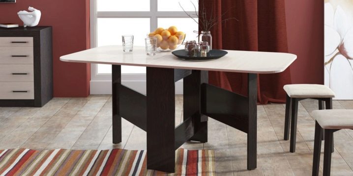 لذلك ، قم بعمل قطعتين صغيرتين مستطيلتين من نفس الحجم. خلال النهار ، يمكن نقلهم إلى أجزاء مختلفة من المطبخ أو حتى شقة ، وقبل تناول الطعام معًا ، يمكن نقلهم ، وبالتالي تشكيل طاولة كبيرة. خيار عملي للغاية للمطابخ الصغيرة. عند التصنيع ، انتبه إلى الأجزاء السفلية – يجب ألا تتداخل الحواجز والحزم مع بعضها البعض عند توصيل الجداول.