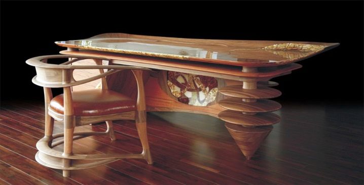 نضيف أيضًا أن الأرجل والقاعدة يمكن أن تكون معدنية. لا يجب أن تخاف من الجمع بين الخشب والمعدن – بتصميم مناسب ، لا يمكن أن يكون متناغمًا فحسب ، بل مثيرًا للاهتمام أيضًا. في التصميمات الداخلية الحديثة ، الدور العلوي والتكنولوجيا الفائقة ، في بعض الأحيان لا يمكنك الاستغناء عنها. بالإضافة إلى ذلك ، يتم دمج المعدن بشكل فعال مع الزجاج أو نظائره..