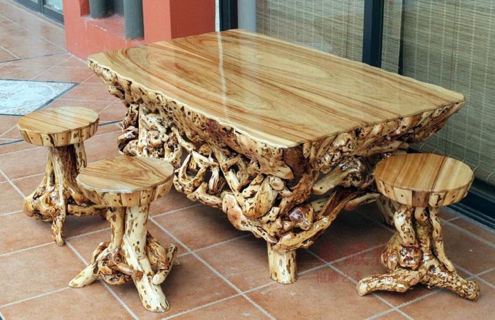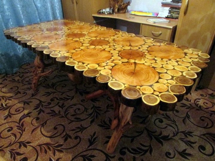 البديل المتطرف هو استخدام الخشب الطبيعي: جذوع الأشجار (بالمناسبة ، يمكن استخدامها بمفردها ، ولكن هذا هو بالفعل تصميم أنيق) أو قطع المنشار. معهم ، كل شيء هو عكس ذلك تمامًا. سوف تضطر إلى طحن نفسك بالورنيش عدة مرات ، ولكن في النهاية ستحصل على منتج فريد تمامًا يمكن لجميع عشاق التصميم “الطبيعي” تقديره ، إذا غادروا بعد التجمعات بالطبع بدون عدد قليل من الشظايا في أماكن مختلفة.