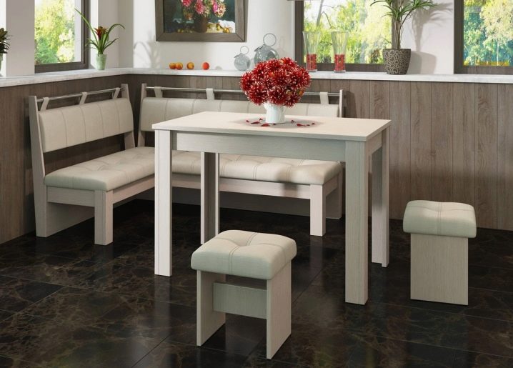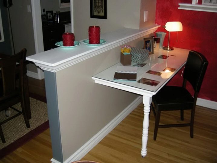 هذا عنصر ضروري للغاية من الداخل. يجب أن تكون مريحة ومريحة ومستقرة. غالبًا ما لا يكون لسطح سطح العمل أهمية أساسية – فعادة ما يكون مغطى بفرش طاولة أو قماش زيتي. عندما تصنعها بنفسك ، من المهم الانتباه إلى الأجزاء السفلية من الهيكل حتى تتمكن من الجلوس على الطاولة دون مشاكل ، ولديك دائمًا الفرصة لوضع ساقيك بشكل مريح.