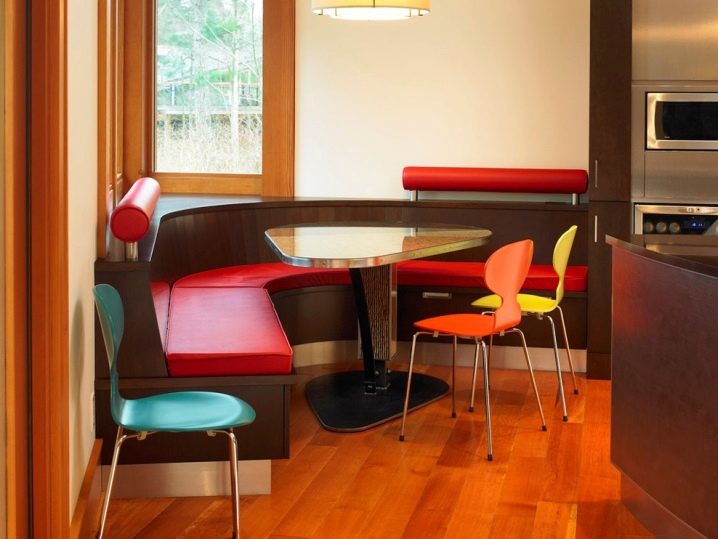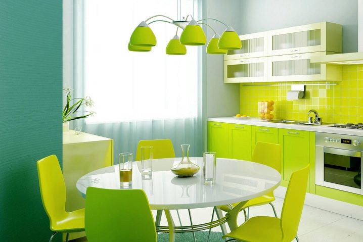 تتناسب العديد من لوحات الألوان ، بما في ذلك الألوان الزاهية ، مع داخل المطبخ. لا تخف من جعل الطاولة حمراء أو صفراء أو خضراء – فهي عصرية وممتعة وجمالية ، وستخلق مزاجًا جيدًا عند الطهي وتناول الطعام والتواصل مع الأسر والضيوف..