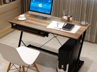 كل خيار له مزاياه الخاصة التي تؤثر على تصميم الجدول. في الحالة الأولى ، لن تقف وحدة النظام في الطريق في متناول اليد ، ولكن لن يكون من الملائم جدًا توصيل منافذ USB بها من الخلف. عند التصميم ، اترك مساحة كبيرة مفتوحة خلف الطاولة ، ولا تضعها بالقرب من الحائط. إذا كانت وحدة النظام موجودة في الأعلى ، فيجب أن يكون المكتب مستقرًا قدر الإمكان ، ومن الأفضل صنع سطح الطاولة من مادة متينة وموثوقة.