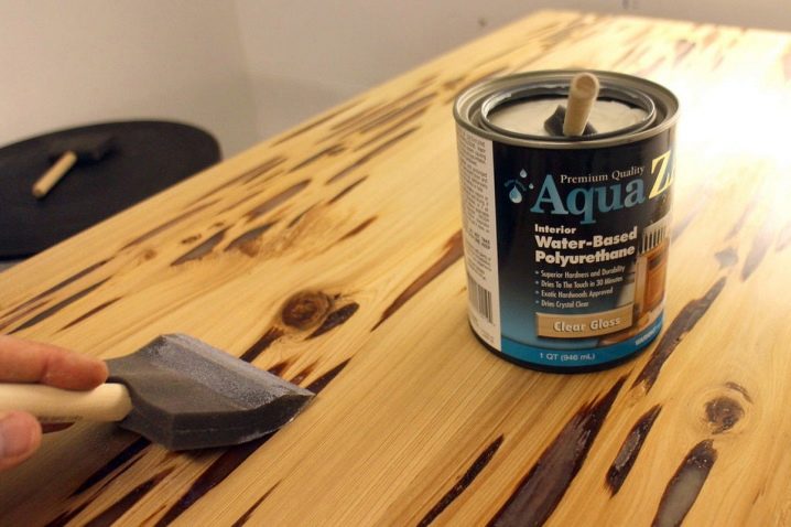 وبالطبع تحتاج إلى ورنيش أو طلاء للمعالجة النهائية. قد تضطر إلى طلاء سطح الطاولة عدة مرات (بعد الأولى ، سيرتفع الوبر ببساطة) ، مما يعني أنه من الأفضل شرائه بهامش.