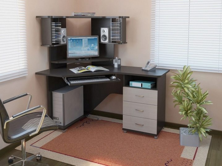ومع ذلك ، فإن الجدول الذي يحتوي على زوايا قائمة له بعض المزايا المحددة. من الأسهل تجهيزها بأدراج ورفوف لتخزين الكتب والأقراص. لا تنسى موثوقية تثبيت هذه الهياكل ، حيث يمكن أن يصل وزن مجموعة الموسيقى أو الألعاب إلى 7-10 كجم.