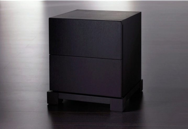 والمثال الأخير هو مكتب ليلي صغير مع درجين. في هذه الحالة ، دعنا نلتقط الألوان الداكنة. سيحتاج الخشب إلى المعالجة الجيدة والتلميع. تصميم الدرج – بسيط قدر الإمكان.