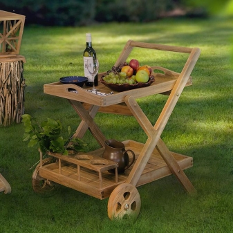 - طاولة متحركة في منزل ريفي. عادة ما يكون هذا خيارًا أكثر إحكاما. يمكن استخدامه في الداخل أو في الخارج في الشرفة الأرضية أو في الهواء الطلق. من الأفضل أن يتم التركيز الرئيسي في الإنتاج الذاتي على استخدام مواد خفيفة الوزن بحيث يمكن حملها.