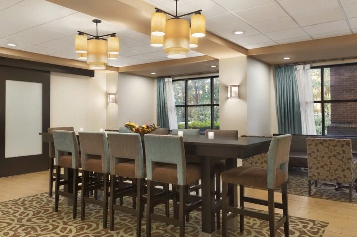 الجدول ، على الرغم من أن العنصر الرئيسي للداخلية في مثل هذه الغرفة ، لا ينبغي أن يشغل كل المساحة. لذلك ، خاصة في المطابخ الصغيرة ، من العملي جعلها مربعة – يمكنك الاقتراب من جميع الجوانب ، ولا يزال من غير المحتمل أن يتناسب أكثر من أربعة أشخاص خلفها. من ناحية أخرى ، في غرف الطعام الكبيرة ، من الأفضل الالتزام بالتنسيق الكلاسيكي المستطيل..