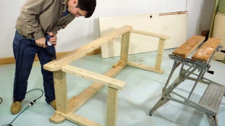 استمرارًا للعمل ، يمكنك أيضًا إرفاق مقاعد بالجدول – اجعلها جزءًا من هيكل واحد. من الأفضل توصيل المقعد بالطاولة بألواح خشبية خاصة باستخدام المسامير أو دبابيس الشعر الطويلة. الغسالات والصواميل مطلوبة أيضًا لضمان الموثوقية. المقاعد نفسها مصنوعة وفقًا لمبدأ مماثل ، فقط ارتفاعها ، بالطبع ، أقل من الطاولة ، ويجب أن تكون الحوامل أكثر موثوقية – من الأفضل صنع صليبي.