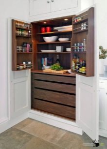 التوفر. يمكنك شراء الخزانة اللازمة لحجرة المؤن من أي متجر أثاث. تقدم الشركات المصنعة الحديثة السلع بأسعار متنوعة. سوف تحتاج إلى اختيار الخيار الذي يناسبك..