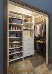 التنظيم الأمثل للفضاء. عند إنشاء غرفة خلع الملابس في الخزانة ، يجدر بنا أن نتذكر أنه يجب أن تكون هناك خزانة ملابس بملابس خارجية في الزاوية البعيدة..
