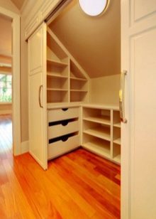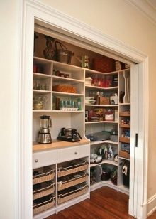 هناك العديد من الأمثلة الجذابة المختلفة حول كيفية تحويل المخزن إلى غرفة ملابس أنيقة أو تنظيم المساحة على النحو الأمثل. حتى بالنسبة لـ “خروتشوف” هناك خيارات مناسبة. على سبيل المثال ، يمكن استخدام الأثاث المدمج. سيساعد في توفير المساحة وتخزين المنتجات بسهولة..